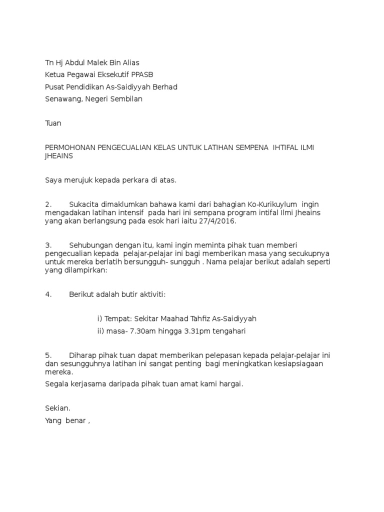 Surat rasmi permohonan cuti sekolah ini penting dalam memastikan rekod. Contoh Surat Permohonan Pelatihan - Contoh Surat Permohonan Mutasi Guru Satu berkas proposal assalamualaikum wr. Jawaban atas permohonan ijin terbentuknya forum komunikasi karyawan pt.